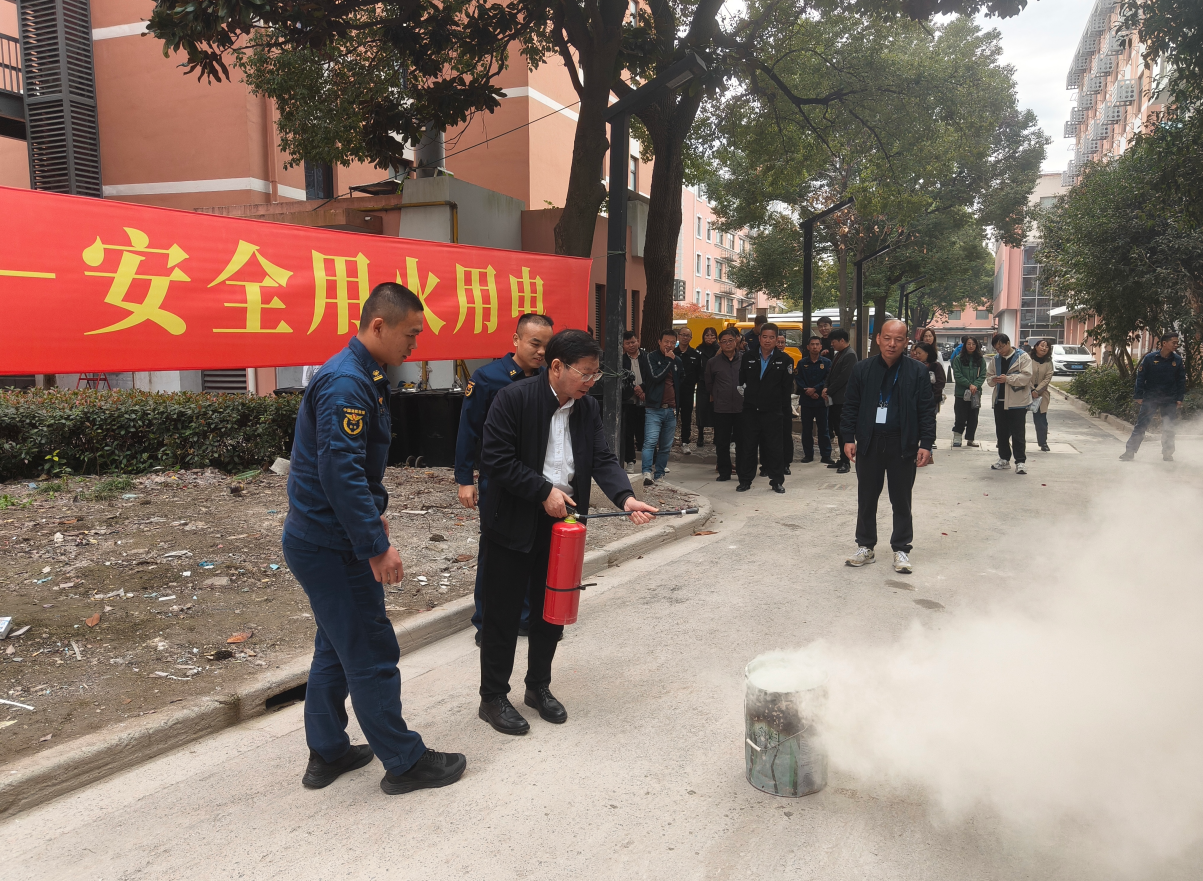 首先,嘉定区城南消防救援站教官岳腾飞进行了专题授课,通过案例分析和影像展示,开展“识风险、懂预防”科普教育,使教职工更为直观地认识到火灾危害的严重性,学习如何预防和处理初级火灾处置和自防自救。随后,结合市科技党委“公共场所消防安全风险隐患排查整治”专项活动要求,城南消防救援站万队长对学员宿舍楼、厨房、电动汽车充电桩等重点部位进行现场指导,开展“早发现、早整改”隐患排查。最后,在消防官兵们的指导下,各位教职工对灭火器的使用进行了实战操练,组织开展“真灭火、真动作”实操实训。