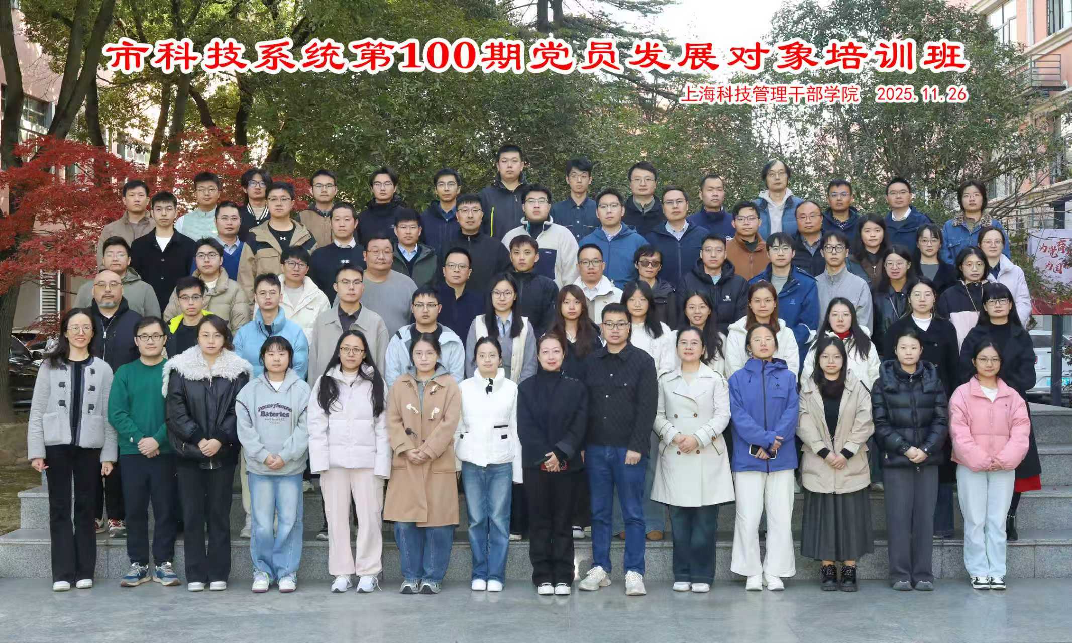 为深入学习贯彻党的二十大和二十届四中全会精神,进一步教育引导党员发展对象端正入党动机、锤炼坚强党性,11月26日至28日,市科技系统第100期党员发展对象培训班在学院嘉定校区举办。