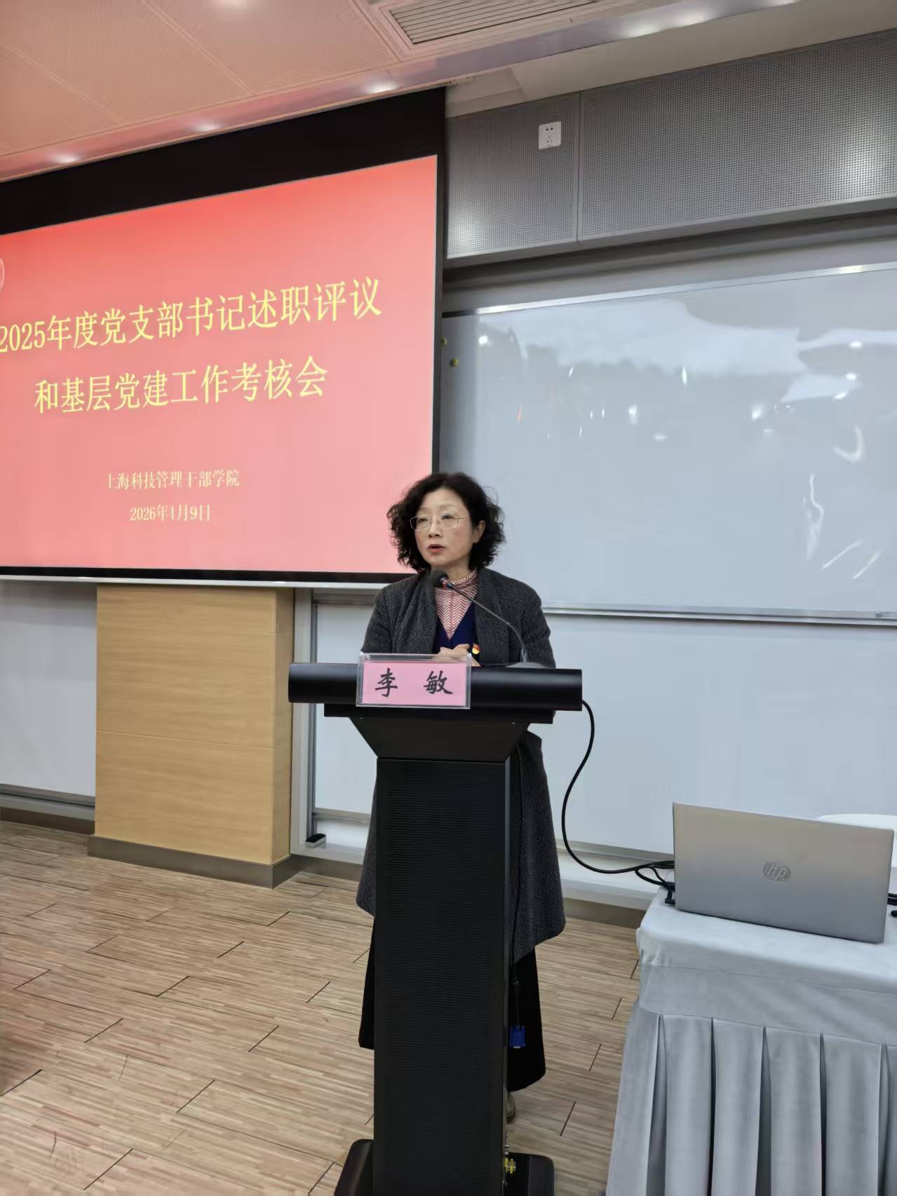 为深入贯彻落实新时代党的建设总要求,压实基层党建主体责任,2026年1月9日,学院党委在嘉定校区召开2025年度党支部书记抓基层党建工作述职评议和基层党建工作考核会。学院党委书记李敏主持会议并作点评讲话,市科技工作党委组织人事处干部徐畅同志到会指导。