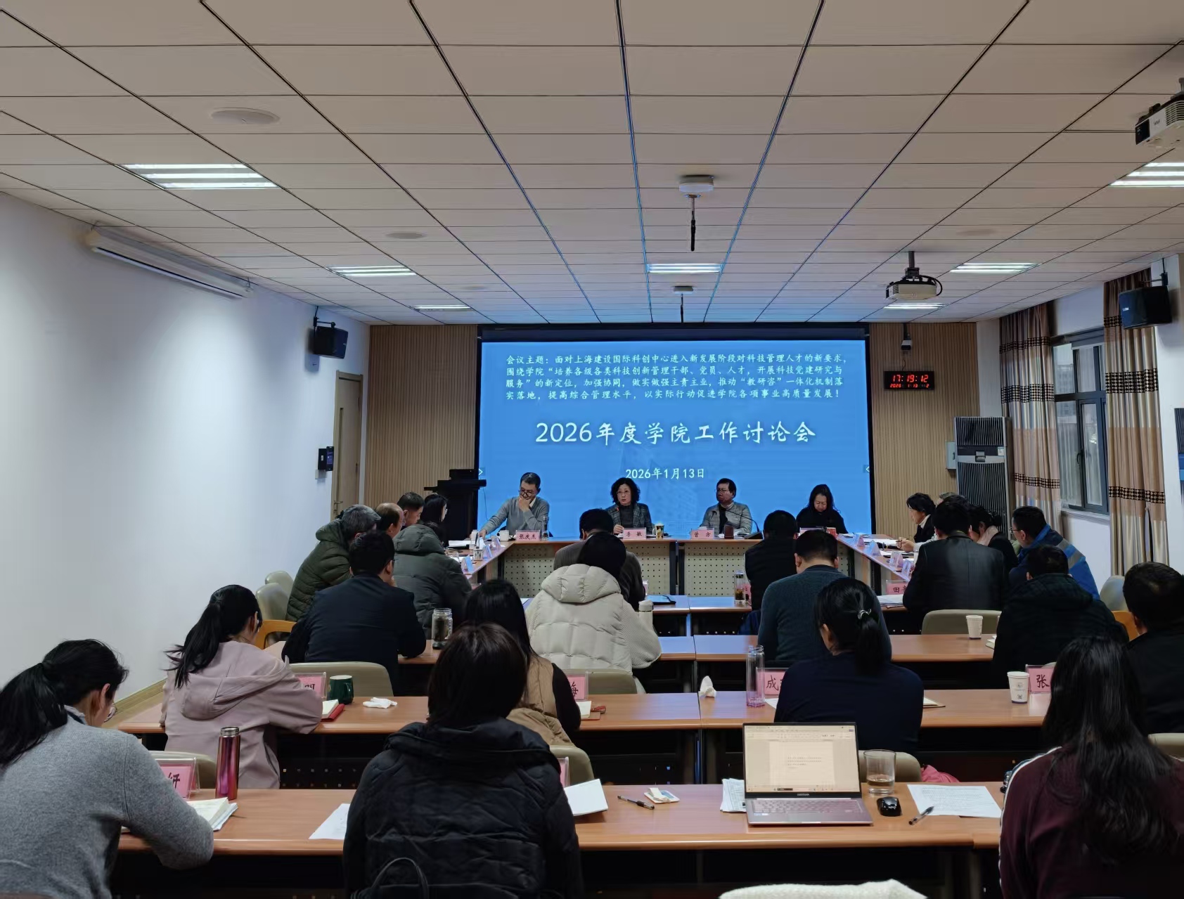 1月13日,学院召开2026年度工作讨论会。学院领导班子成员结合各自分管业务,就相关重点任务提出明确部署和要求,为新一年学院各项工作谋篇布局。各部门负责人围绕部门职责,就2026年工作思路及重点工作作交流发言。