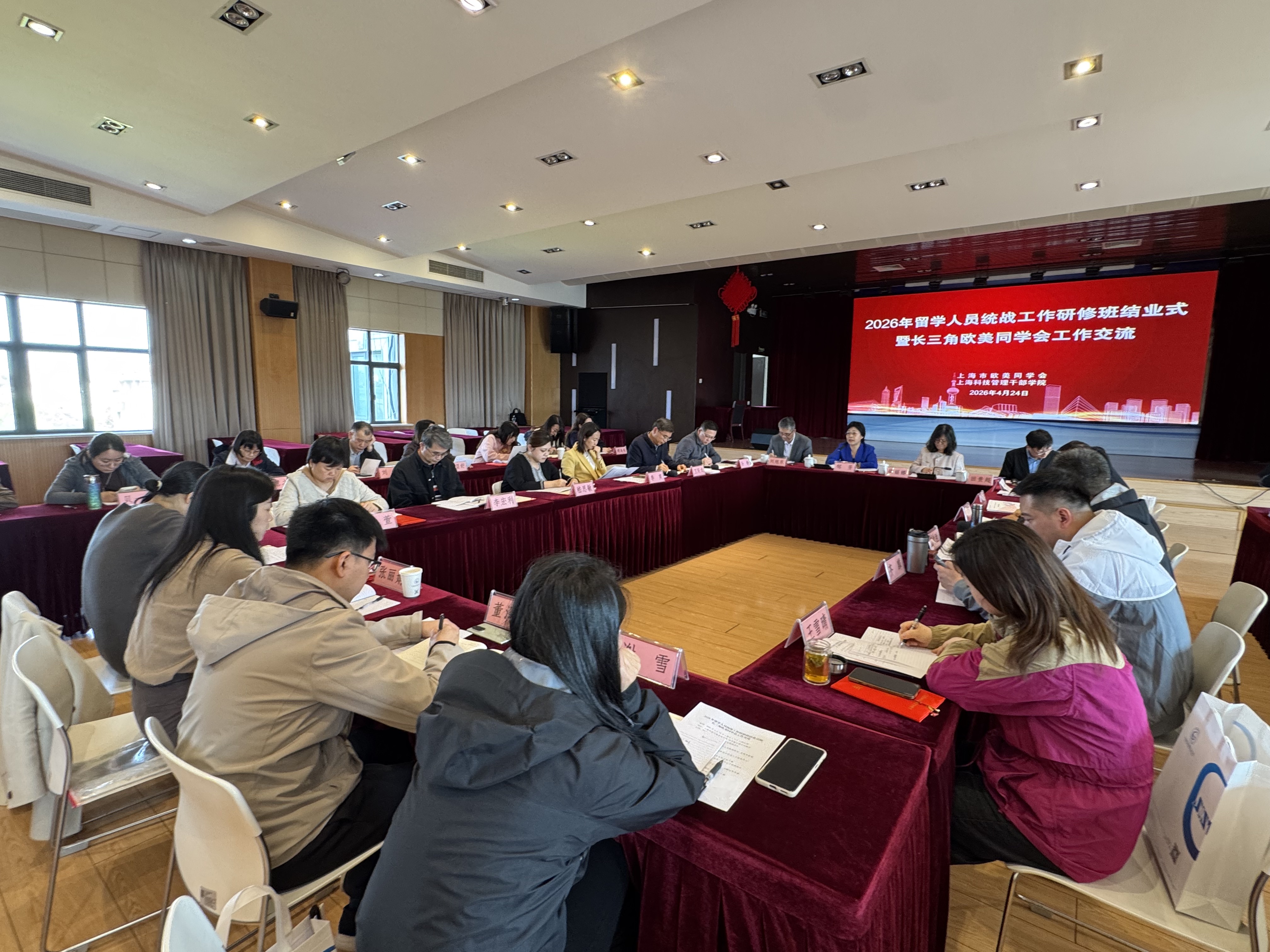 4 月 22 日至 24 日,由上海市欧美同学会主办的 2026 年留学人员统战工作研修班暨长三角欧美同学会工作交流在上海科技管理干部学院举办。苏、浙、皖及上海留学人员统战工作骨干参加学习交流。